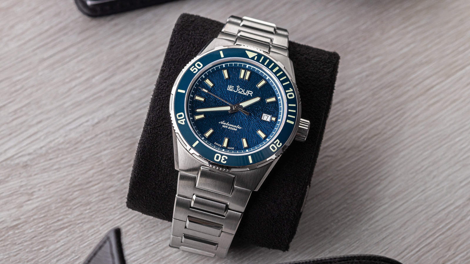 Inspired by the ocean's depths, the dial features a meticulously crafted grainy whirlpool texture, imparting distinctive character to this sophisticated timepiece. Its design captures and reflects light dynamically, while Swiss Super-LumiNova ensures optimal legibility in low-light conditions. This seamless blend of functionality and refined style positions the Coral Diver as an exceptional choice for both exploration and elegant everyday wear.
