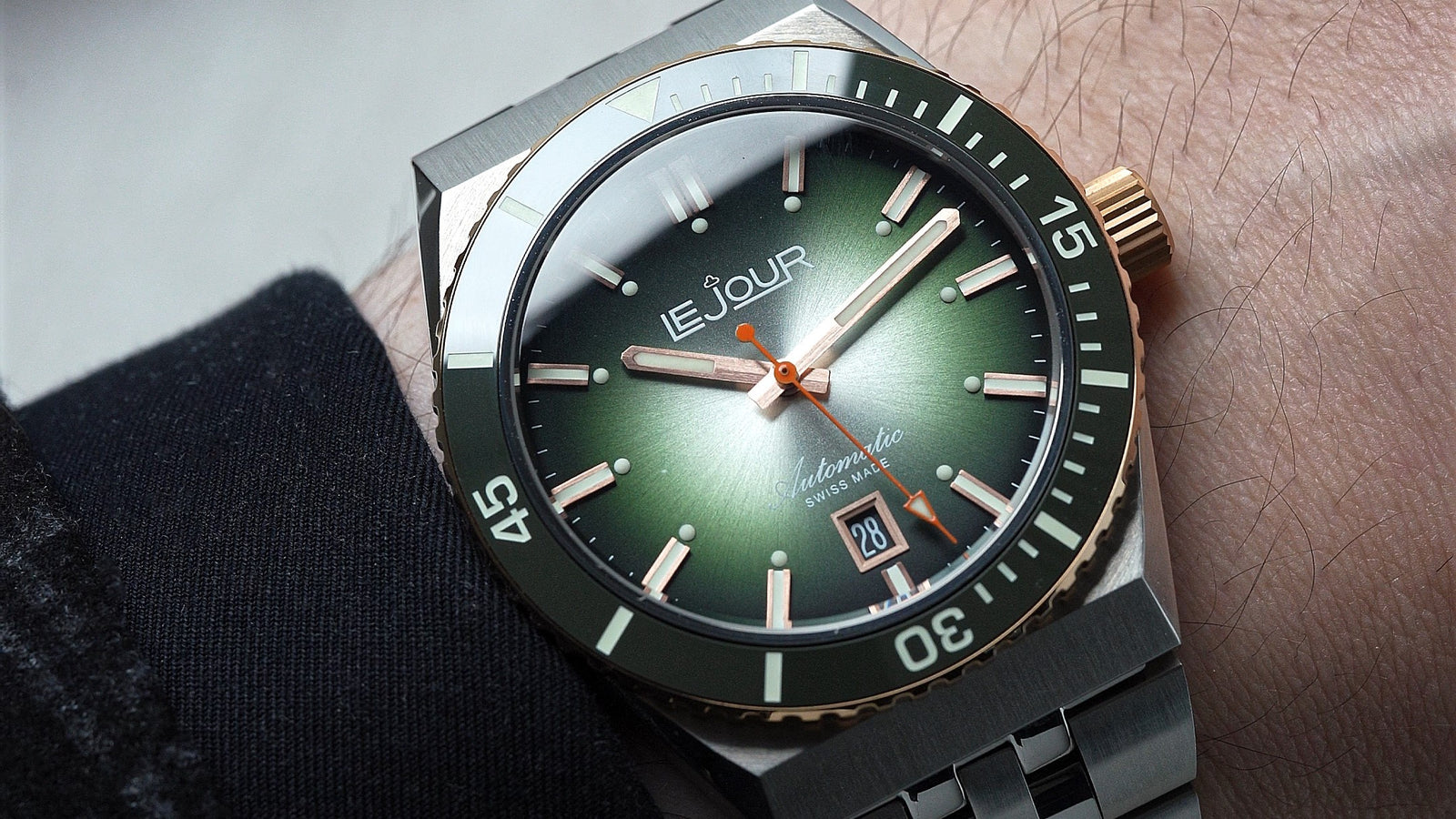 The Delmare features a breathtaking gradient sunburst, or fume finish, dial that captivates with its rich, dynamic depth. Lighter hues at the center seamlessly transition to darker tones at the edges, crafting a stunning visual effect that shimmers with movement. Enhanced by Super-LumiNova, this timepiece guarantees optimum legibility even in the darkest settings, making the Delmare not just a statement of elegance, but a reliable companion for every adventure.