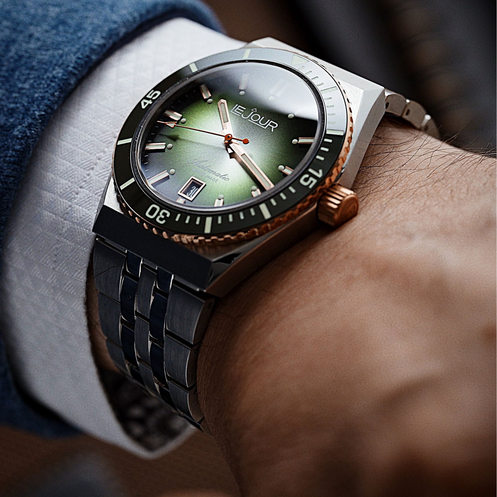 Inspired by vintage divers, the Delmare dive watch revives the classic angular case design with unparalleled modern craftsmanship and sleek aesthetics. With its expertly executed brush-mirror polish finishing, this timepiece makes a bold statement on the wrist, seamlessly blending timeless elegance with contemporary flair. Ideal for those who appreciate both heritage and style, the Delmare invites wearers to embrace their adventurous spirit while looking effortlessly refined.