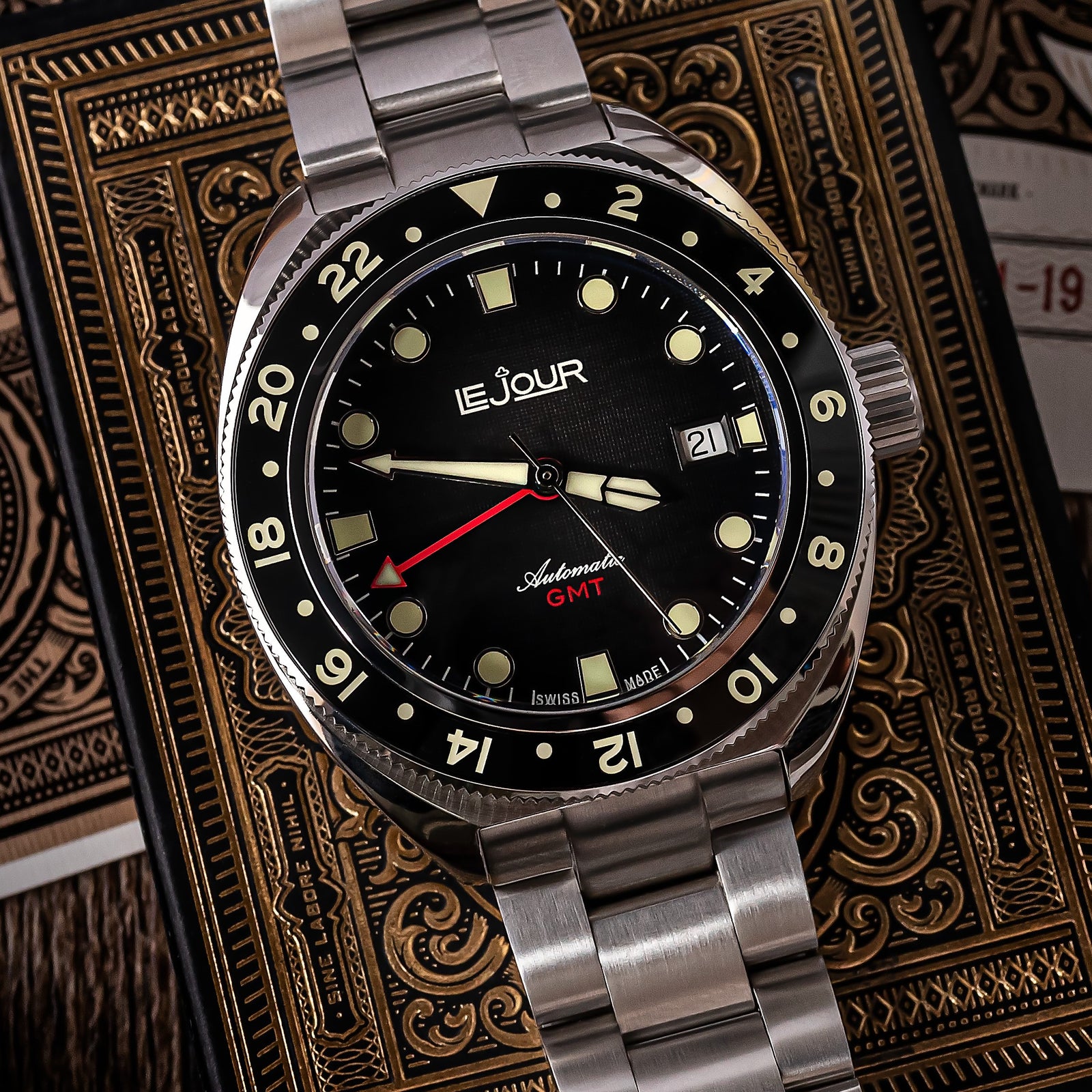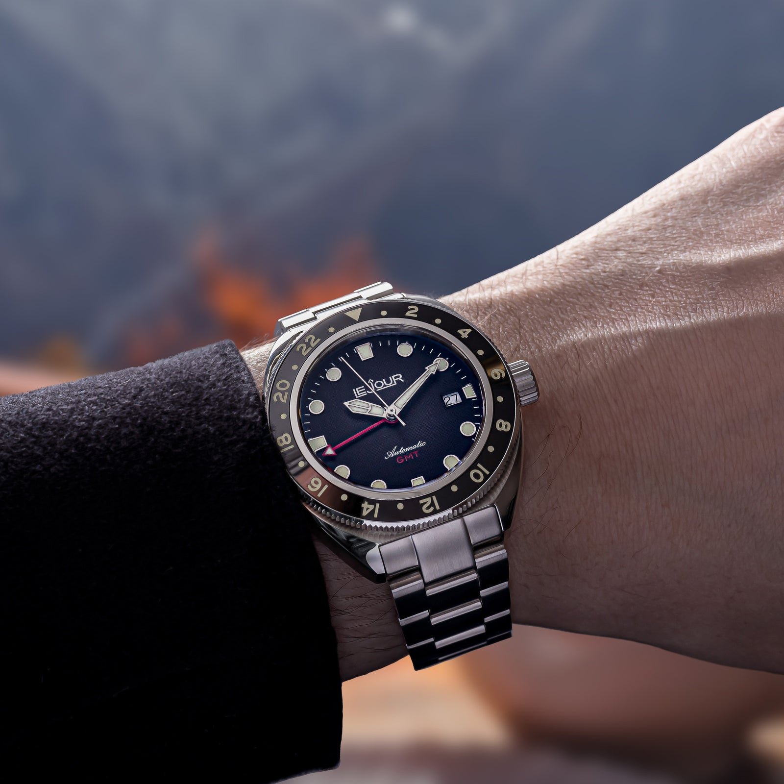 The Hammerhead GMT quintessentially blends the essential attributes of a dive watch with sophisticated GMT functionality. With its exceptional specifications and sleek urban aesthetics, this timeless timepiece is crafted to elevate your journeys in unparalleled style. Whether you're diving into thrilling adventures or soaring to new heights, the Hammerhead GMT ensures you do so with elegance and precision, making every moment a statement of refinement and exploration.