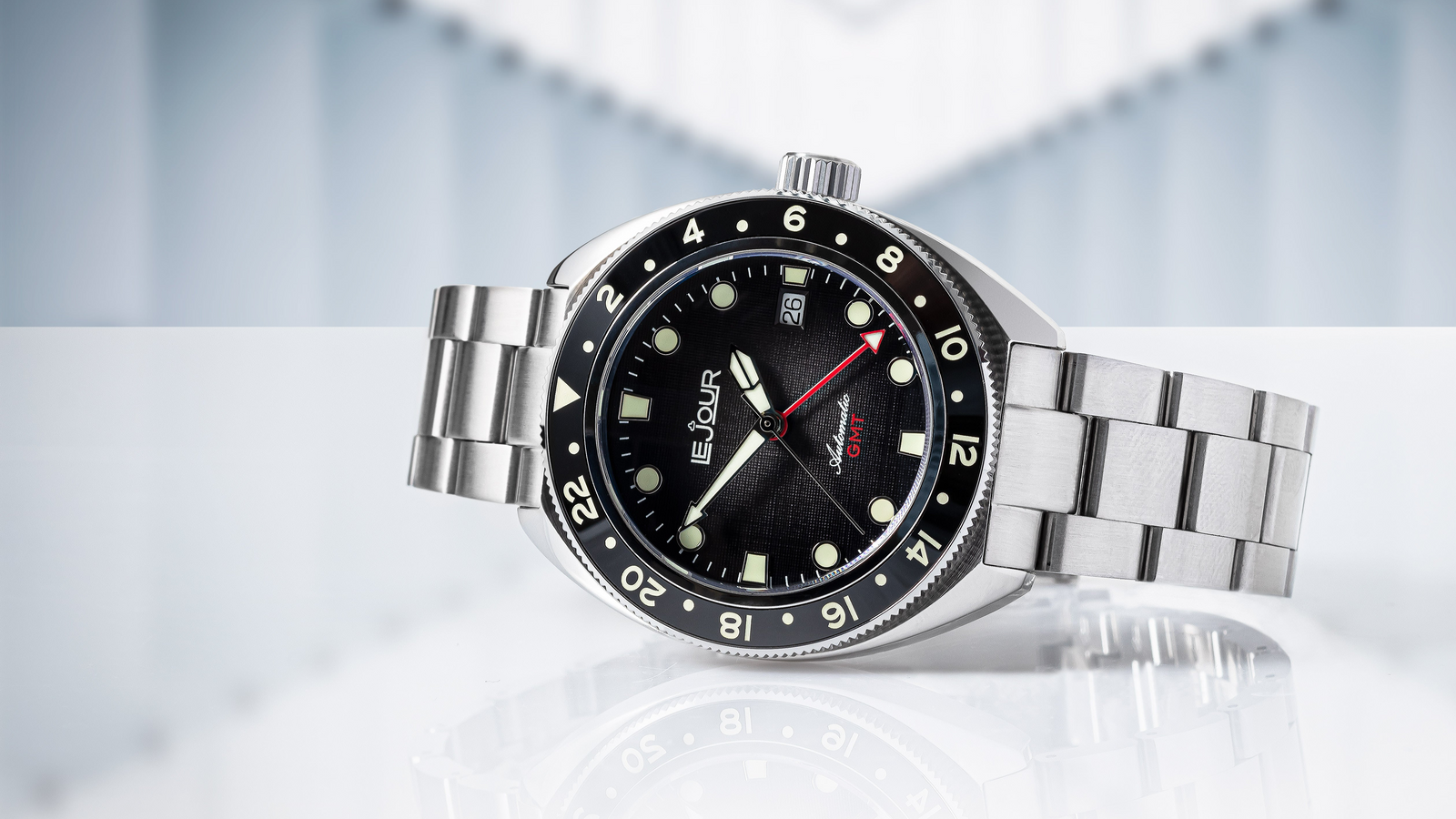 Embrace the epitome of adventure and refinement with the Hammerhead GMT. Meticulously designed for the discerning traveler, this timepiece effortlessly tracks a second timezone through its intuitive 24-hour GMT hand and bidirectional bezel, providing a seamless view of both local and home time. Its rugged construction ensures you have the freedom to explore the depths of the ocean or the bustling streets of a new city. Crafted from premium stainless steel, the elegantly shaped cushion case merges sophisticated aesthetics with lasting comfort, making it the perfect companion for both extraordinary journeys and daily endeavors.