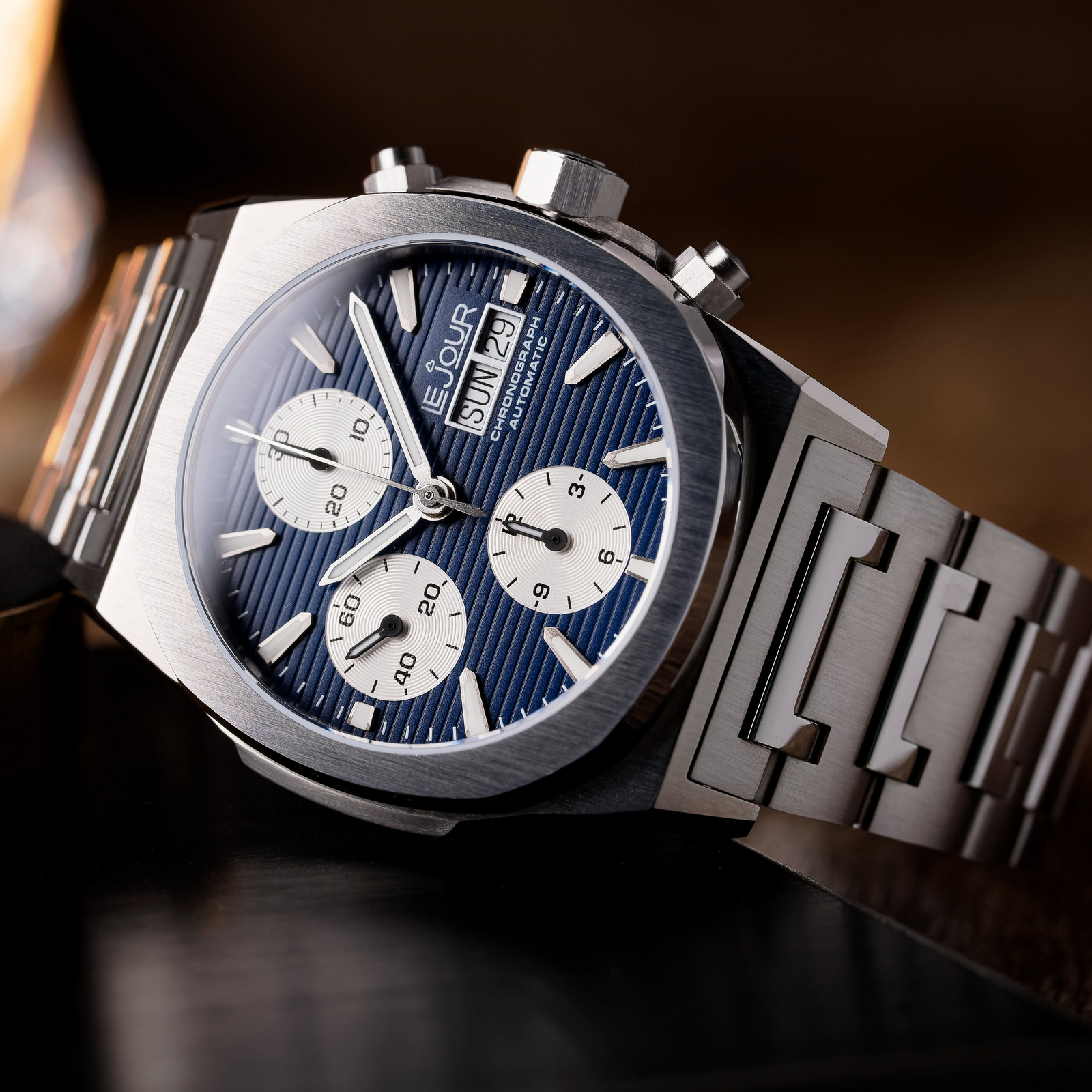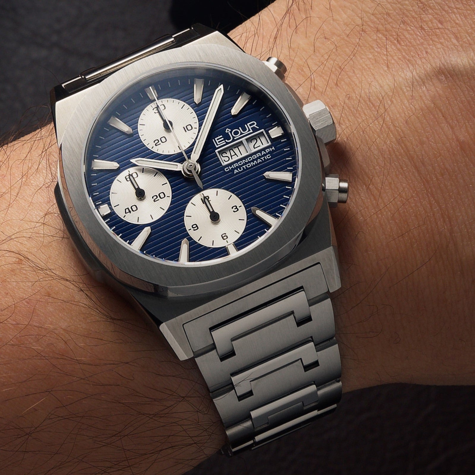- Blue dial with Silver color sub-dials