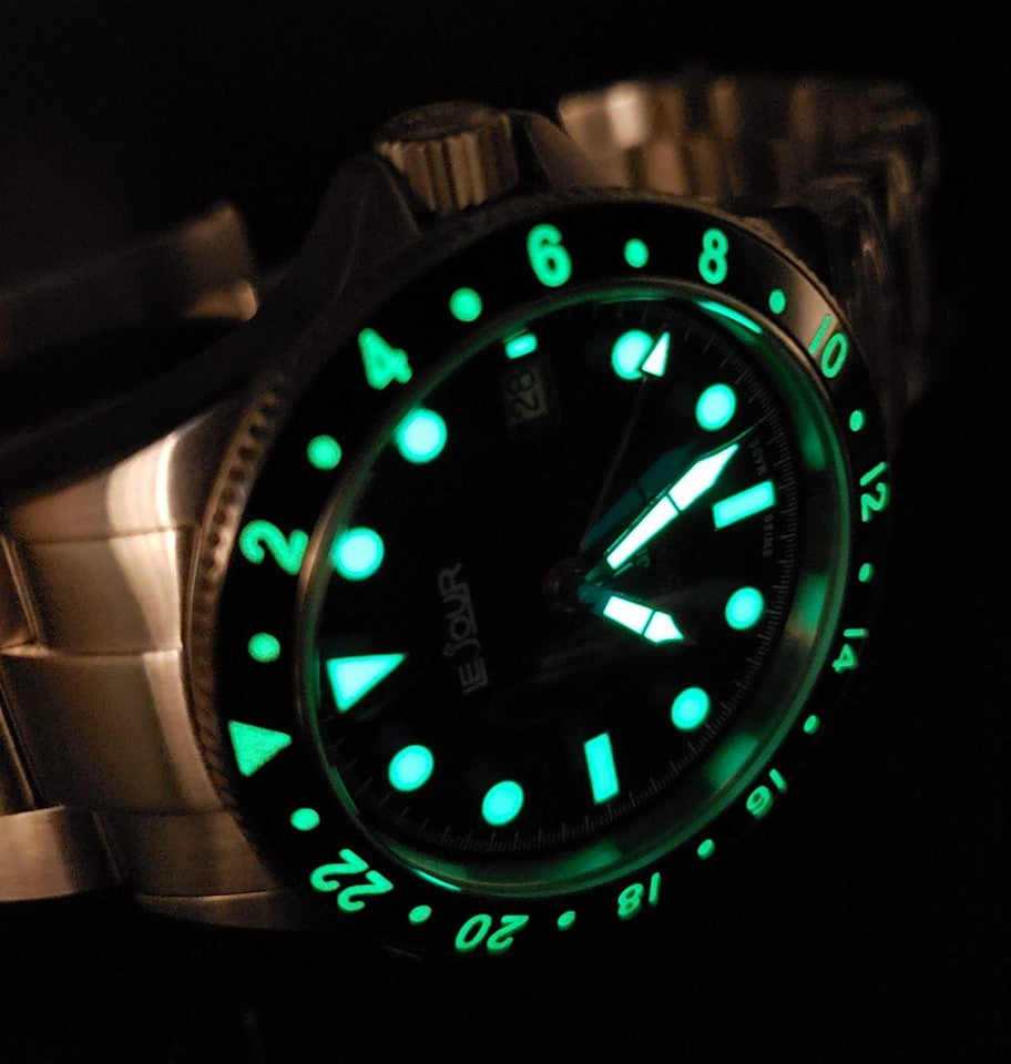 The Seacolt GMT is 40mm in diameter, traditional size for Vintage Watches and available in 5 Elegant Combinations. Dome Sapphire Crystal , Swiss Superluminova - Old Radium Grade , 300m Water Resistance and powered by Swiss Made ETA 2836 movement the Seacolt GMT is a perfect combination of Luxury and Functionality.